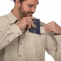 A Men’s and Unisex vented hiking shirt made from soft but durable Supplex Nylon with Bug Off anti-mosquito treatment, ideal for places where bugs may drag you off into the jungle.