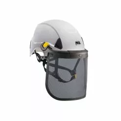 The Petzl Vizen Mesh Face Shield is compatible with the Vertex and Strato helmets, protecting against flying wood chips and shavings.